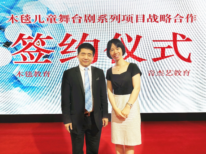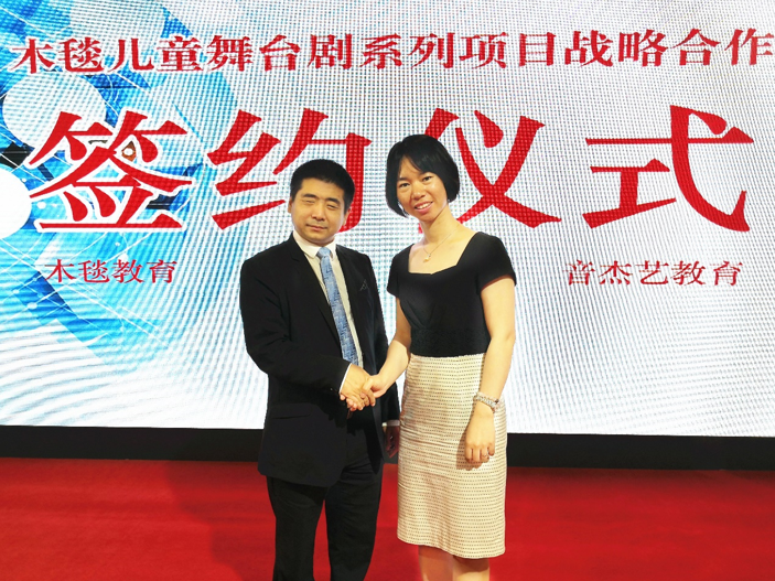 2018年6月1日下午,在国家会议中心,音杰艺与木毯教育在儿童舞台剧项目达成战略合作,签协议,同时参与7月份展演的启动发布会等活动